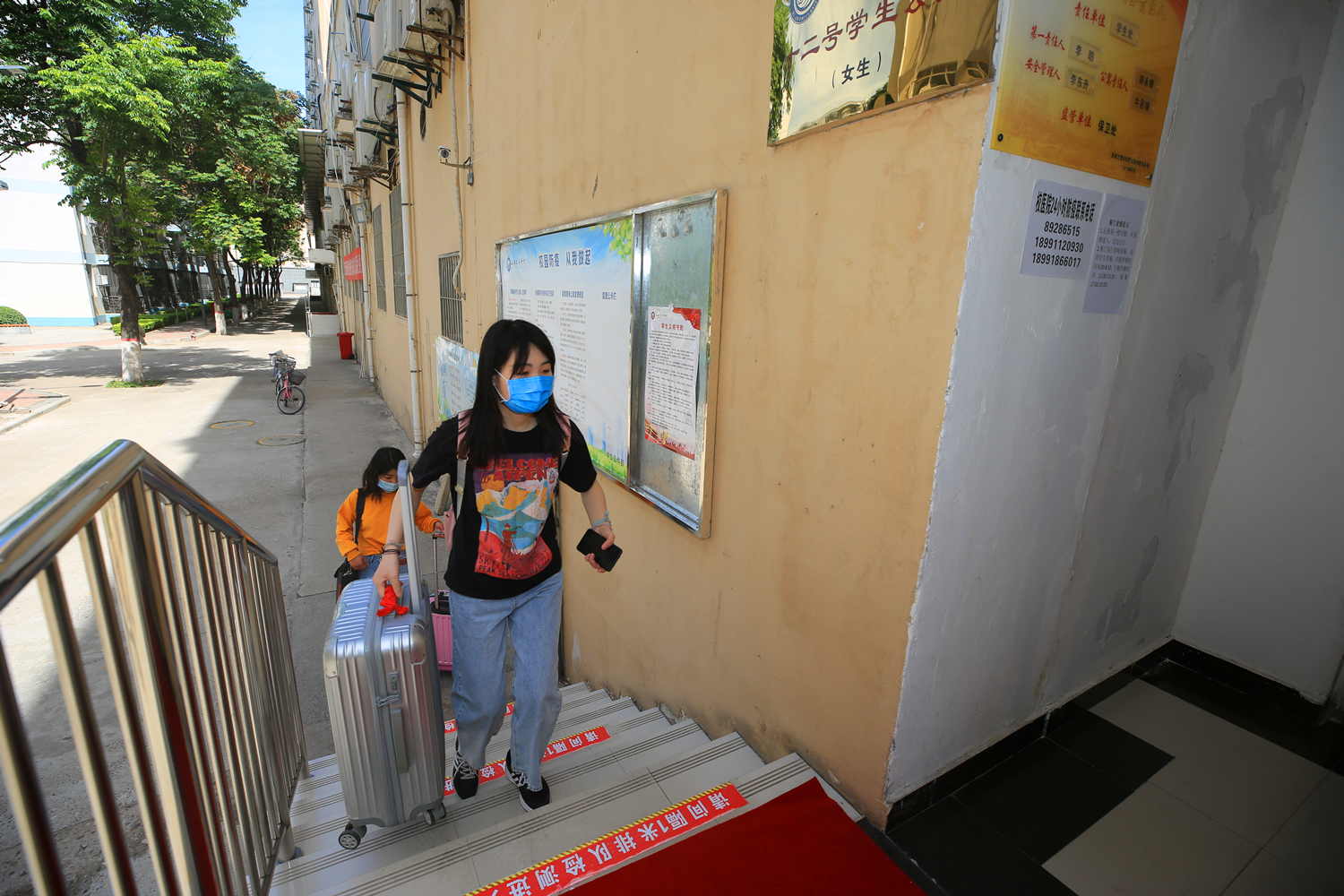 报到现场,辅导员、教师志愿者、公寓管理员、保安、后勤员工们为返校同学做好各项服务工作。同学们在校门口通过体温测量和一卡通查验后,有序进入校园,完成返校报到手续后,乘坐电瓶车回到宿舍。学校还安排教师志愿者党员分赴高铁站、火车站和汽车站,做好接站工作。