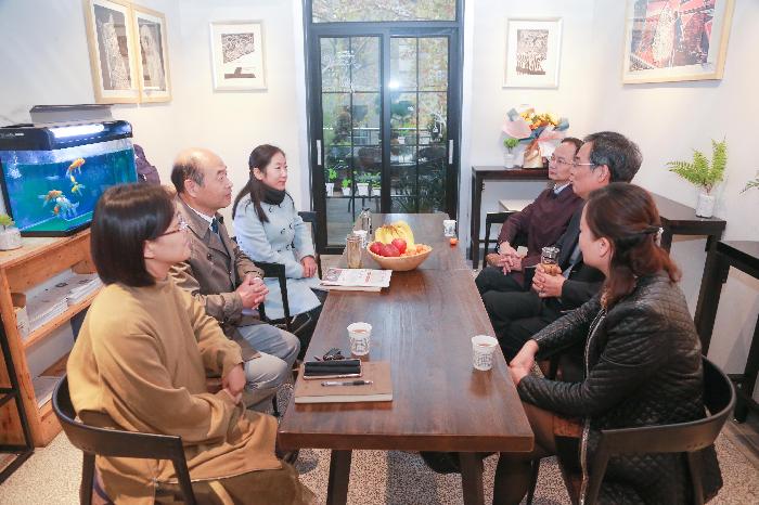 11月20日下午,党委书记问向荣、校工会主席范宏赴艺术学院慰问《民间美术》课程主讲教师涂俊,并与相关教师座谈交流。党政办、宣传部相关人员陪同。