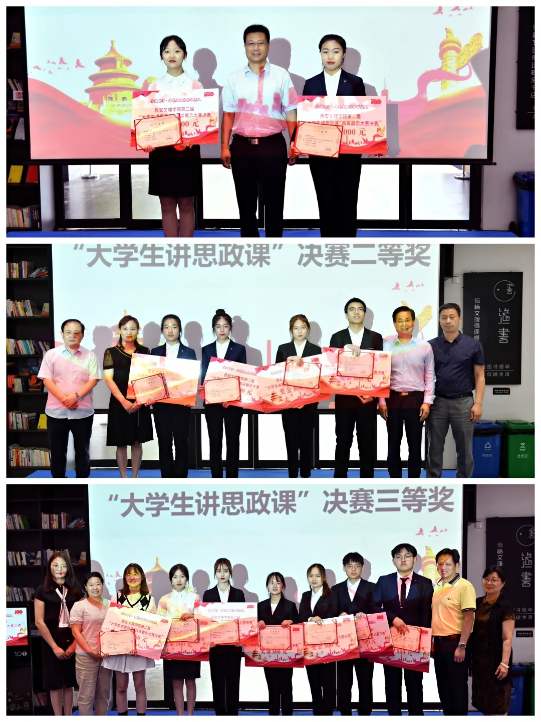 为隆重庆祝中国共产党成立一百年,回顾党的光辉历程,深入贯彻落实习近平总书记在党史学习教育动员大会上的重要讲话精神,引导广大青年学生做到学史明理、学史增信、学史崇德、学史力行,鼓励广大学生认真学好思政课,学会能讲思政课,在教务处、校团委的大力支持下,马克思主义学院承办的西安文理学院第二届“大学生讲思政课”风采展示大赛决赛于2021年6月9日14时在我校倍格硅巷路演大厅成功举办,此次活动主题为“学史增信•学党史强信念跟党走”。西安文理学院党委副书记、副校长李忠良出席会议并为获奖学生颁奖。