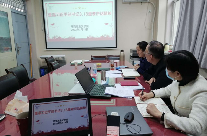 3月18日上午,马克思主义学院召开线上线下相结合的视频会议,重温习近平总书记“3.18”重要讲话精神。会上,大家集体观看了央广网2019年3月18日《习近平主持召开学校思想政治理论课教师座谈会》视频,学习了习近平总书记2020年9月发表在《求是》杂志的文章——思政课是落实立德树人根本任务的关键课程。参会教师重温了习近平总书记关于思政课建设的重要论述,再次重申了总书记对思政课教师“政治要强、情怀要深、思维要新、视野要广、自律要严、人格要正”的时代要求。马克思主义学院院长钱晓萍强调,马克思主义学院要守正创新建好思政课、全体思政课教师要理直气壮上好思政课,以“3.18”重要讲话精神为根本遵循,夯实思政课立德树人根基。