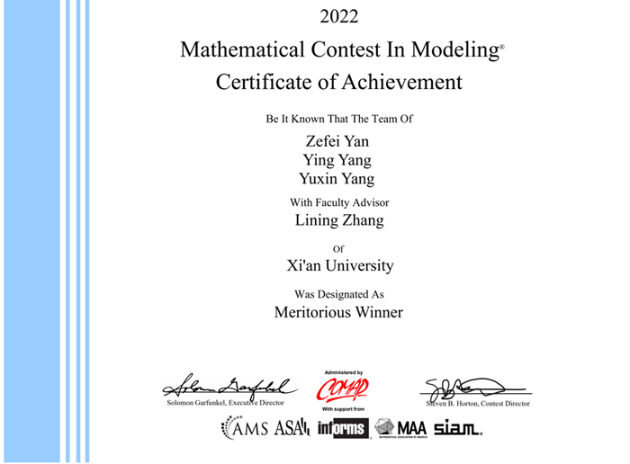 5月6日,2022年美国大学生数学建模竞赛评奖结果揭晓,我校信息工程学院学生获得国际一等奖1项,国际三等奖2项。其中由数学与应用数学专业19级闫泽飞、18级杨雨欣、软件工程专业18级杨莹三位同学组队获得的国际一等奖是我校学生目前在此项竞赛中获得的最高奖项。
