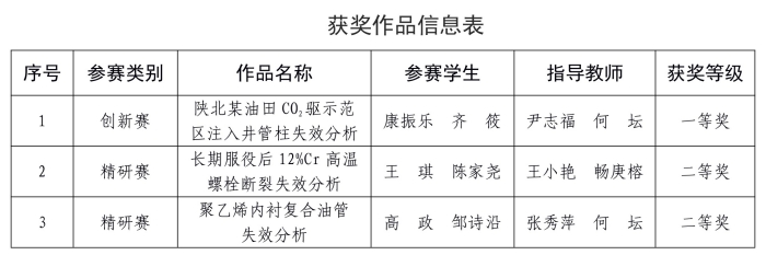 全国失效分析大奖赛是由中国体视学学会主办,中国机械工程学会失效分析分会、可靠性分会、材料分会、理化检验分会协办的一项大学生学科竞赛,是我国材料失效分析领域唯一的全国性赛事。失效分析研究是一种综合运用多学科知识解决材料失效过程问题的研究项目。机械与材料工程学院师生积极参与,精心备赛,参赛作品拟题、文献查询、试验及分析、论文撰写、PPT制作等一系列过程,经过了多次讨论和修改,在14组初赛团队中脱颖而出,最终在决赛中取得了优异成绩。