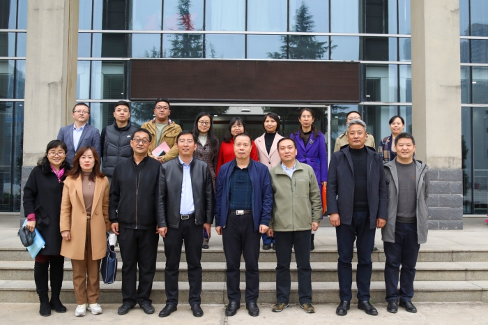 11月18日上午,在局长李长武带领下,雁塔区科技和工业信息化局一行7人来我校调研并座谈。校党委书记王育选会见李长武一行,党委委员、副校长韩权出席座谈,党委委员、科研处长鲍锋主持会议。