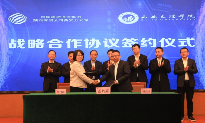 3月24日下午,西安文理学院与中国移动西安分公司战略合作签约仪式在西安文理学院高新校区举行。西安文理学院党委书记王育选,校长陈刚,西安移动党委书记、总经理张宇锋等领导出席仪式。西安文理学院、中国移动西安分公司有关部门负责同志参加仪式。仪式由西安文理学院校长陈刚主持。