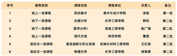近日,教育部公布第二批国家级一流本科课程认定结果。我校新增5门国家级一流本科课程,其中线上一流课程1门、线上线下混合式一流课程2门、线下一流课程2门。截至目前,我校共有国家级一流本科课程6门。