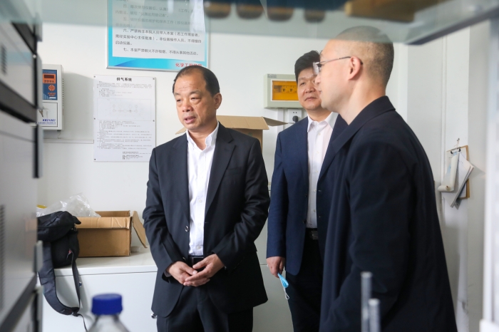 在化学工程学院,王育选重点检查了实验室试剂暂存室,要求做好实验室日常管理工作,尤其是危化品的规范使用,确保安全开展实验教学。