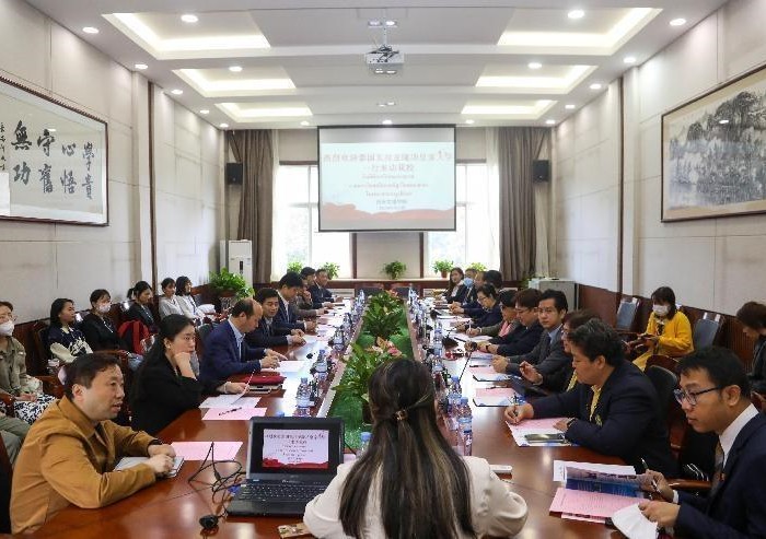 5月22日上午,泰国瓦拉亚隆功皇家大学苏巴校长一行11人来访我校。我校校长陈刚、副校长刘明利,国际交流处、历史文化旅游学院、师范学院、经济管理学院、信息工程学院相关负责人及中泰文化交流中心主任胡旭峰参加会议。会议由副校长刘明利主持。