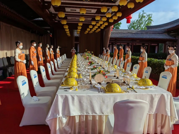 为协助保障专项活动顺利举行,校团委与西安曲江国际酒店管理有限公司共同通过体检、政审、核酸和培训环节从文学院、机械与材料工程学院遴选33名同学参与此次服务保障工作。我校志愿者全部在核心区域负责国宴服务、传菜等工作。在校团委副书记钱尹璐的带领下,学生服务团队24天内完成了近300小时的培训任务。同学们怀着崇高的使命感与责任感,圆满完成了晚宴接待工作,表现出我校服务西安,服务大局的志愿服务理念与责任意识。