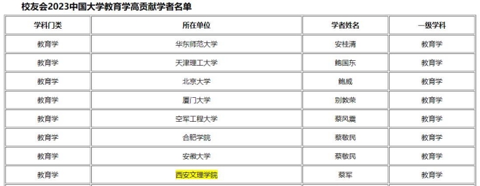 近日,全国第三方大学评价研究机构艾瑞深校友会网最新发布校友会2023中国高贡献学者榜单。中国高校教育学门类共有潘懋元、顾明远、林崇德、钟秉林、叶澜、刘海峰等499名杰出学者入选2023中国高贡献学者榜单,我校学前教育学院蔡军教授榜上有名。