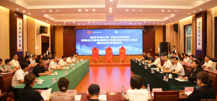 徐琳茹表示,共建活动是深化学习贯彻习近平新时代中国特色社会主义思想主题教育成效、贯彻落实习近平总书记在听取陕西省委和省政府工作汇报时的重要讲话精神的实际行动,同时也是深入推进干部作风能力提升年、巩固拓展西安审计清廉机关试点建设、携手推进党风廉政建设的一项创新举措,能够有效引导审计干部以史为镜、以案为鉴、以廉为荣,自觉筑牢拒腐防变的思想防线,在潜移默化中滋润人、教育人、塑造人。她对双方的合作寄予厚望,希望双方继续加强合作,开展全方位深层次交流,努力打造机关院校交流合作的典范。充分利用“基地”教育资源,加大审计人员专业培训,持续深化研究型审计建设,努力培养业务精通的专业化审计队伍;充分利用“基地”警示功能,引导党员干部时刻警钟长鸣,始终做遵纪守法、廉洁自律的表率,不断推进依法审计、文明审计、廉洁审计;充分利用“基地”宣传功能,引导党员干部时刻保持清醒头脑,牢固树立法纪意识和底线思维,在审计监督中严守政治关、品性关、作风关、廉洁关,自觉做忠诚、干净、担当的新时代审计人。期待双方以此次合作为契机,探索创新、强化管理,共建、共赢、共同进步,努力把基地打造成反腐倡廉宣传教育的重要阵地、弘扬优秀廉政文化的生动课堂,引导全市审计干部牢固树立廉洁从审的价值观念,为奋力推进清廉审计建设营造风清气正、和谐向上的浓厚氛围。