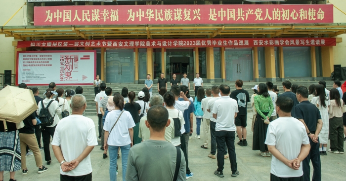 7月5日,“铜川市耀州区第一届'文创艺术节'暨西安文理学院美术与设计学院2023届优秀毕业生作品巡展、西安水彩画学会风景写生邀请展”启动仪式在铜川市耀州区宣传文化中心成功举办。我校工会主席范宏,铜川市耀州区副区长李岩,美术与设计学院院长田军,铜川市耀州区文化和旅游文物局局长杨涛、副局长孟根凤、图书馆馆长孙兆君、文化旅游产业投资开发有限公司副经理张伟,西安水彩画学会副会长宋卫东,西安金桔树文化传媒有限公司总经理李攀峰,陕西观典文化传播有限公司副总经理任丽耀,以及我校美术与设计学院各系部主任、在校各年级优秀学生代表、铜川市耀州区文化和旅游文物局、图书馆干部职工、市民代表共一百百五十余人参加仪式。