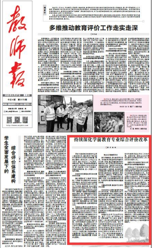 本次《教师版》头版报道,是继《光明日报》《中国教育报》报道之后,省级以上媒体再一次对学前教育专业办学情况的宣传,进一步扩大了学院办学影响力,为持续深化学前教育专业综合评价改革工作构建了新思路,提供了新经验。