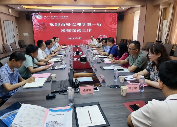 9月5日上午,副校长龚杰昌带领机械与材料工程学院院长张运良、党总支书记武文斌等一行11人赴陕西工业职业技术学院调研交流,陕西工业职业技术学院党委副书记、校长刘永亮,副校长梅创社,以及机械工程学院、电子工程学院、材料工程学院、教务处等领导全程陪同参观交流。