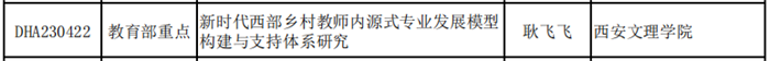 耿飞飞副教授获批的项目名称为“新时代西部乡村教师內源式专业发展模型构建与支持体系研究”。该项目基于对西部乡村教师专业成长内在规律把握的基础上,构建內源式专业发展模型;分析影响教师专业发展的相关因素,及其之间相互作用的机制;进而,探寻西部乡村教师內源式专业发展的路径与支持体系。