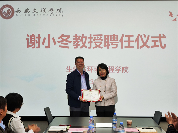 仪式开始前,校长陈刚会见了谢小冬,对他长期以来对西安文理学院发展给予的关注和支持表示感谢。聘任仪式上,鲍锋介绍了谢小冬的基本情况,邬连东为谢小冬颁发聘书。最后,谢小冬作了表态发言,表示今后会加强与学院教学科研团体的合作,帮助青年教师成长,在科研和学科建设等方面,为我校建设高水平城市大学的发展目标做出更大贡献。参会的各职能部门负责人在充分肯定此次领军人才聘任对学校学科发展的重要意义的基础上,表示将为谢小冬在校工作期间做好各项服务保障工作。